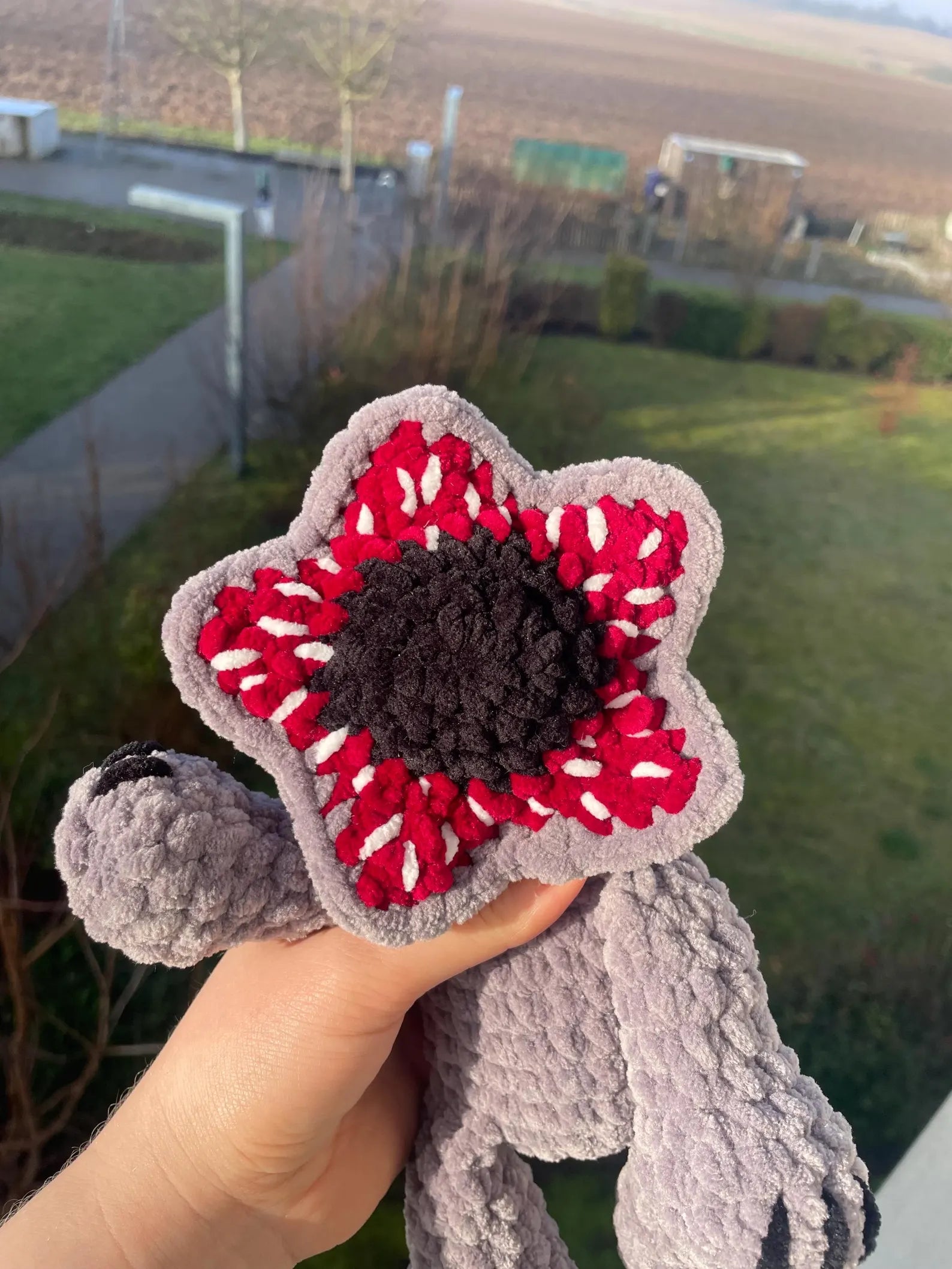 Voici ma version doudou du Demogorgon, entièrement crochetée à la main en laine chenille certifiée Oeko-Tex, pour un rendu doux, moelleux et ultra original ⚡️🖤